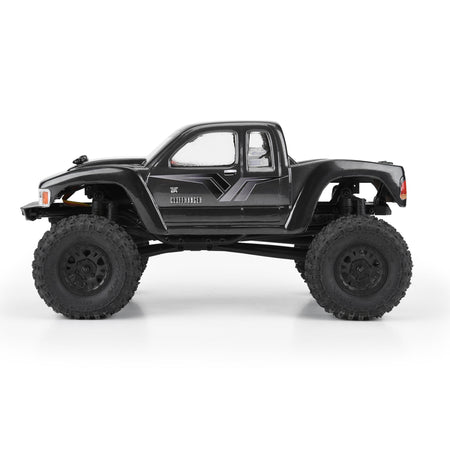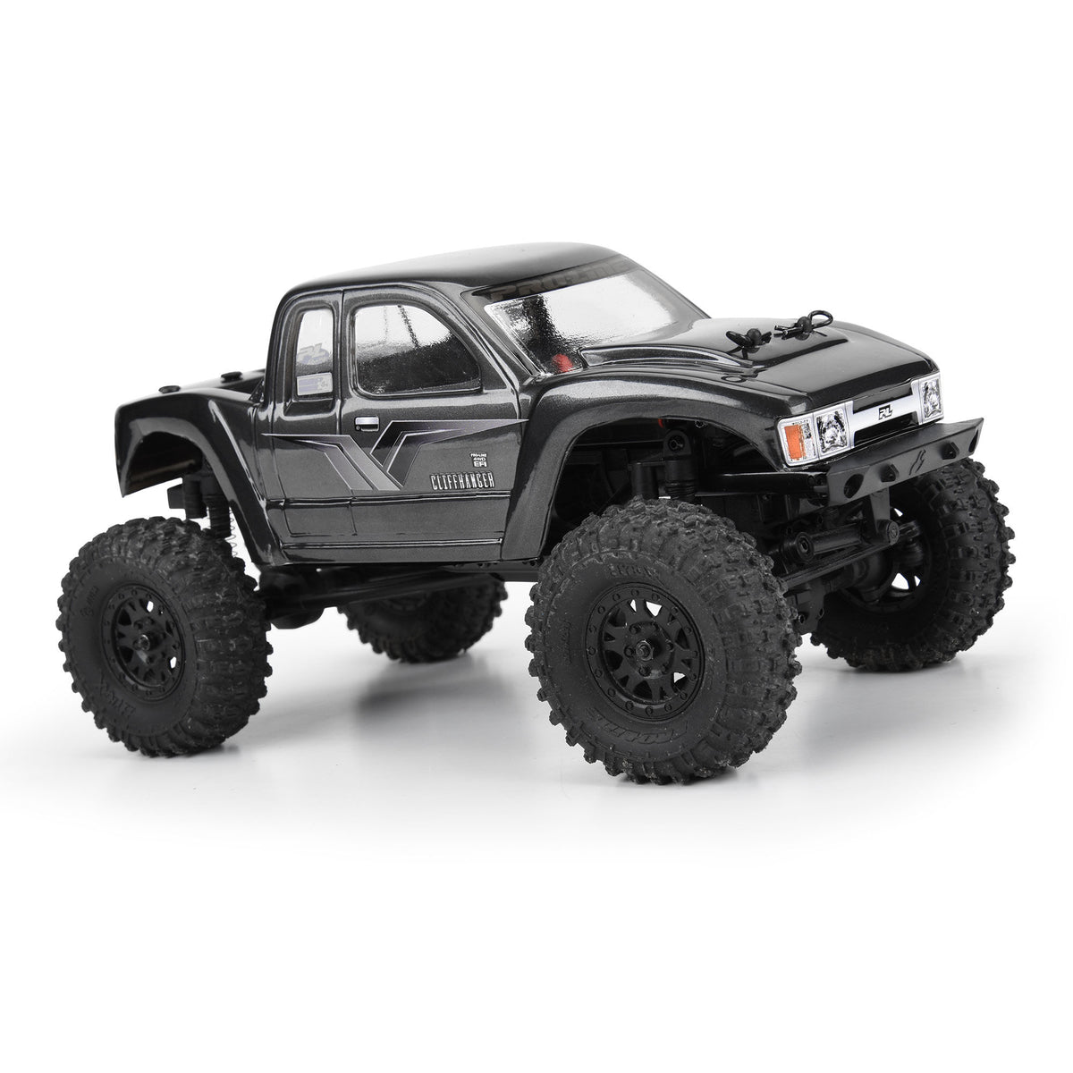 Introducing Pro-Line's Cliffhanger body for the SCX24™! Just like the larger Cliffhanger for 12.3" Crawlers, this mini-Cliffhanger features a pinched front end and a dove-tailed rear end for maximum tire clearance while still maintaining a true-to-scale appearance. The Cliffhanger is made from a single piece of crystal-clear polycarbonate to save on weight and has a molded-in drop-down bed to make room for you to add your favorite tiny scale accessories. Everything on the Cliffhanger body has been optimized for maximum crawling performance for your SCX24™. This body also includes optional headlight buckets for added scale appearance. Don't get stuck on the rocks, get your very own Cliffhanger body today!