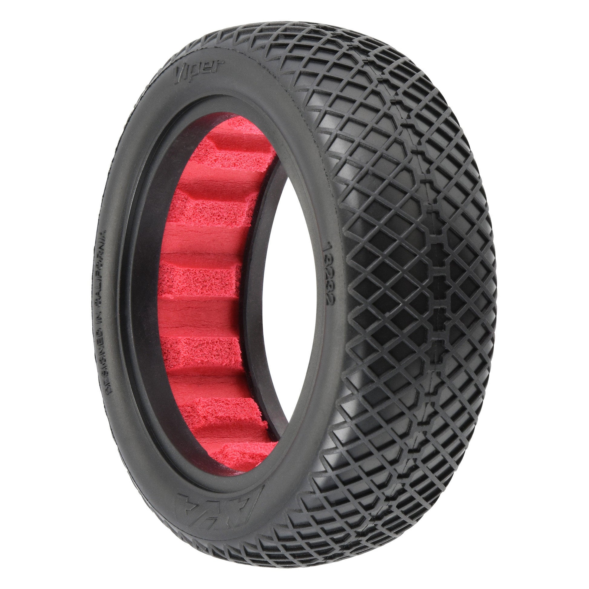 AKA's 1/10 Viper 2.2" 2WD Buggy tires feature a "bar-type" tread pattern designed to break in quickly and provide unparalleled traction on hard-packed or blue groove, indoor and outdoor tracks. Designed in conjunction with RC legend, Gil Losi Jr., the Viper tires boast an updated carcass and optimized tread height and thickness for maximum performance.