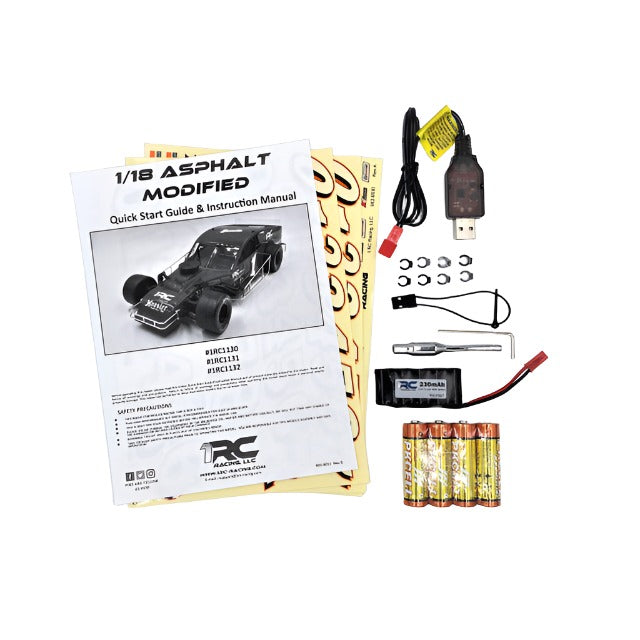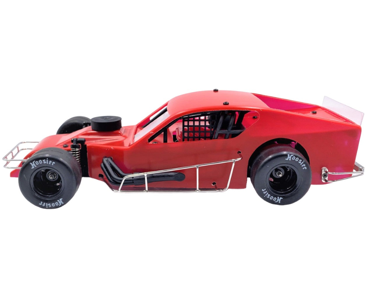The 1/18 Asphalt Modified, Red, Ready-to-Run RC car brings the excitement of asphalt oval racing to a compact, high-performance RC car. Equipped with an 8700Kv brushless motor, full ball bearings, and a 2.4GHz transmitter, this race-ready machine delivers smooth handling, responsive control, and impressive speed right out of the box. Its standalone ESC with LiPo protection ensures efficient power delivery, while the durable chassis and precision steering make it perfect for competitive racing on asphalt tracks. With a rechargeable NiMH battery and USB charger included, you’ll be ready to hit the track in no time. Shop the Asphalt Modified race car for sale today!