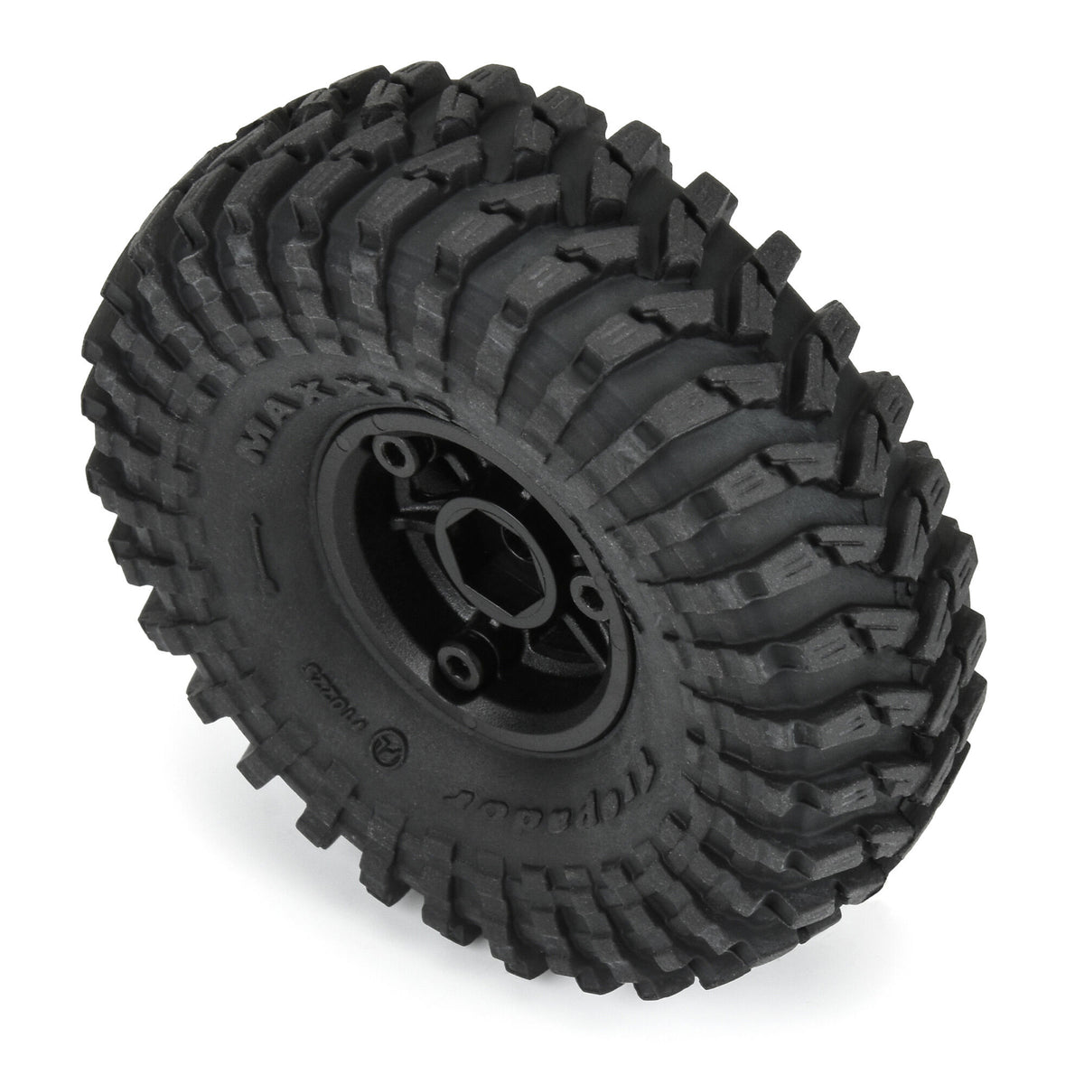 PRO1022510 | Maxxis® Trepador™ 1.0" Tires Mounted on Mini Holcomb Black Internal Bead-Loc 7mm Hex Wheels (4) for SCX24 Front or Rear