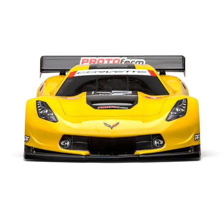 PROTOform brings Corvette Racing's championship heritage to 1/8 GT Class racing with the officially-licensed Corvette™ C7.R race body. From the signature Corvette™ muscular stance and swept-back roofline, to the large front splitter and side vents, every detail of the 1:1 race car is captured to add scale realism to the world of 1/8 GT. The extensive decal sheet lets you deck out your C7.R with Corvette™ branded windshield headers, "Jake" skull hood logo, number plates, and USA flags. Included with the body is an add-on rear wing, secured with three oversized nylon screws and featuring 2 trim-lines and spill-plate sizes: a lower line for sanctioned racing, and an upper line for low-grip club racing.