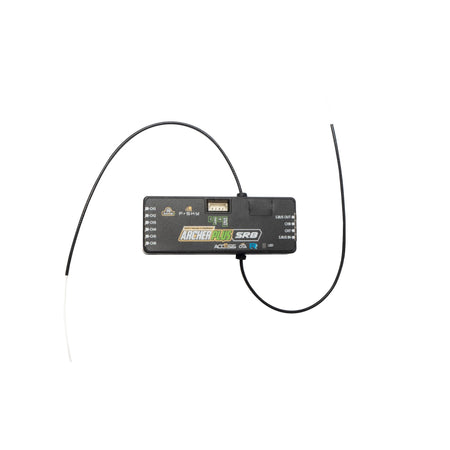 The Archer Plus SR8 are gyro-stabilized receivers with a built-in 3-axis gyroscope and 3-axis accelerometer and feature multiple flight modes (Auto-level, Stabilization, Knife-Edge, etc.) and configuration methods.supports full-range signal strength with dual detachable antennas and guarantees optimal antenna reception and range.The Archer Plus SR8 can be used as a Primary receiver in a redundant solution by wiring the SBUS In port and connecting to any other FrSky receiver equipped with an SBUS Out port. With the FBUS protocol, the Archer Plus series receivers can open up the possibility of seamlessly pairing with multiple telemetry devices (XACT servos, ADV Sensors, etc.) as well as simplifying the builds setup.