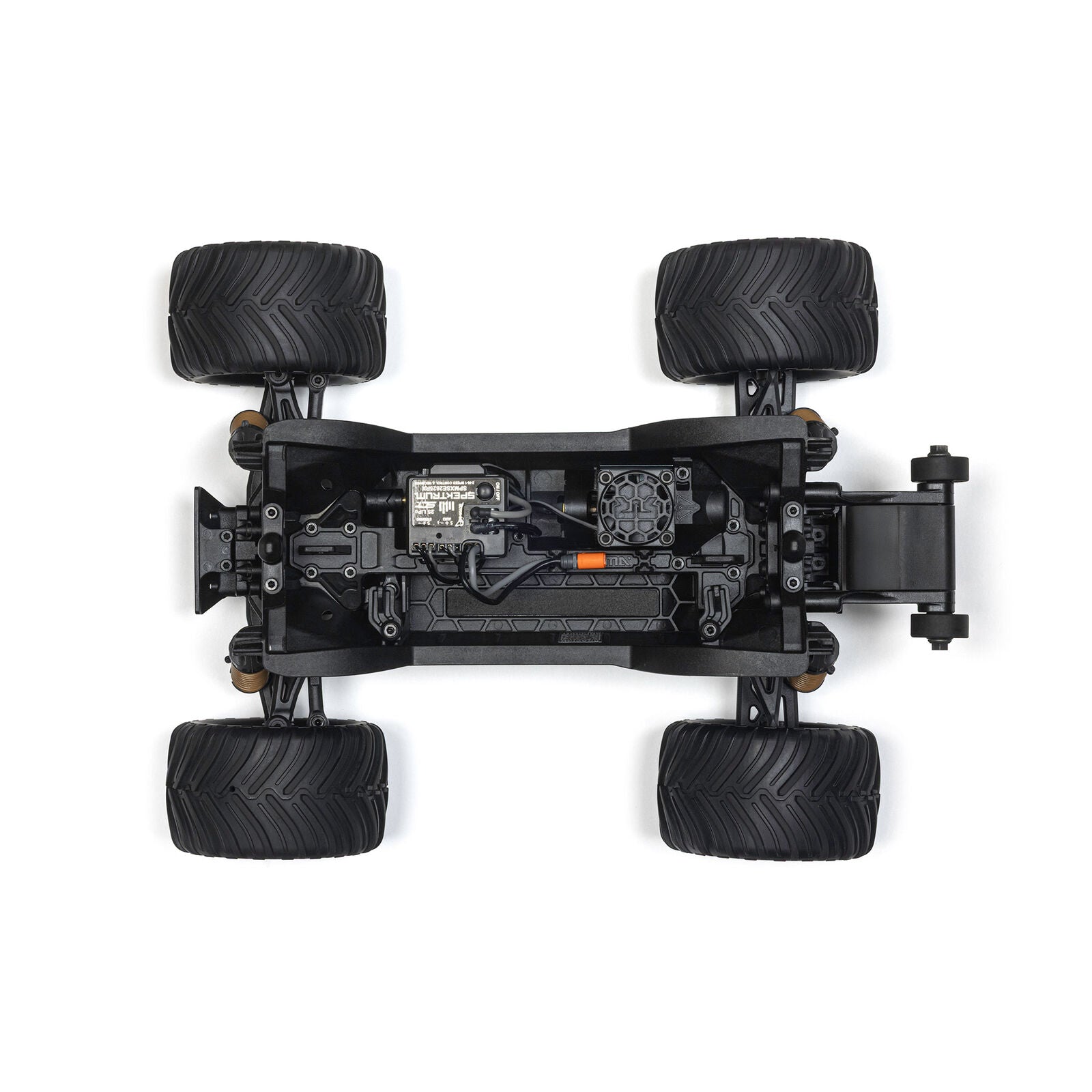 Underneath, the reinforced chassis and high-travel suspension is built to withstand every petrifying impact and keep going. This truck isn't just tough. It's smart. The deep tub chassis keeps out dirt and debris so you can bash harder without clogging the works. The monster truck stance and elevated center of gravity allow it to conquer all obstacles in its way. Chaos, indoors or out, is where the GORGON GROM rules.