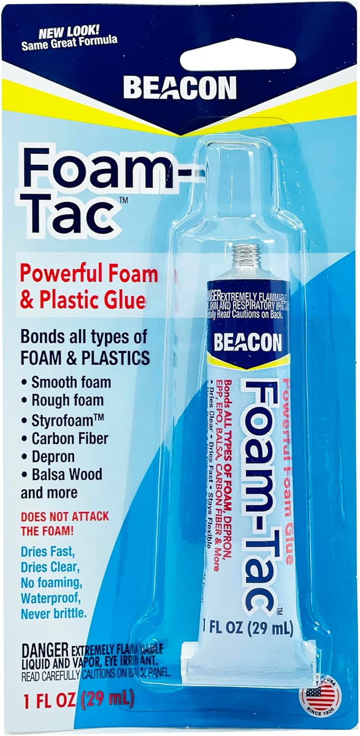 BEACON Foam-Tac Fast-Drying, Waterproof, Ideal for Foam, Plastics, Balsa Wood, and Carbon Fiber - Perfect for RC Builders, 1-Ounce