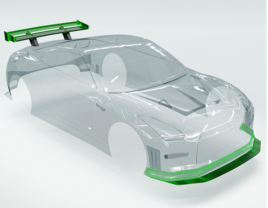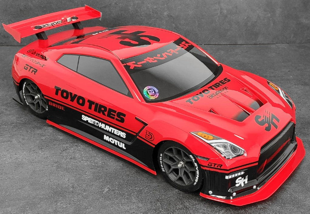 Bittydesign introduces the GTR, developed specifically for Arrma 1/8 platforms. The GTR body shell represents the perfect implementation of Bittydesign's philosophy, which prioritizes quality, attention to detail and performance without compromises. Made from high-quality thick and extremely durable polycarbonate Lexan, the GTR body shell ensures a premium look and durability that withstand the punishment.