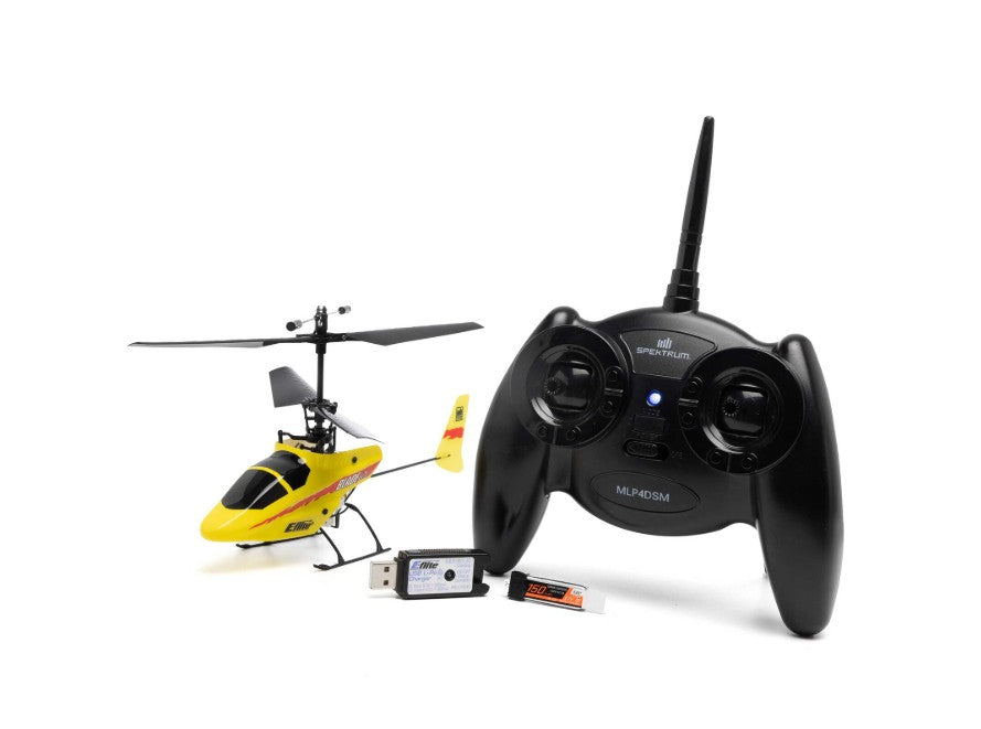 This Ready-To-Fly (RTF) model includes a 4-channel transmitter equipped with Spektrum™ DSMX 2.4GHz technology and everything else you need to fly, including AA batteries for the transmitter, a rechargeable 1S 150mAh battery, and a USB charger. That means there's nothing extra to buy so you can fly!