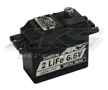 This is the MKS DS1220 Titanium Gear Ultra High Torque Standard Digital Servo. This high torque servo was developed for LiFe applications and is a great choice for 1/8 and 1/10 Scale Buggies, Monster Trucks and Rock Crawlers, Giant Scale Aircraft, and 600~700 CCPM heli applications.