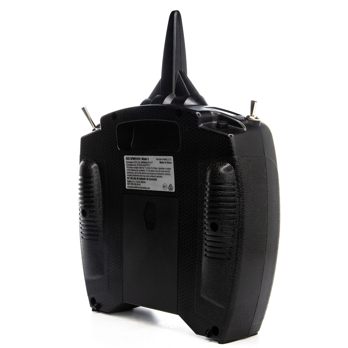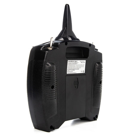 Weight distribution, switch placement and trim switch positions have been optimized for comfort and fatigue-free control. An integrated handle and neck strap hook are included for easy carrying. Ports are provided in the rear battery compartment for using optional wireless trainer and data port. The SRXL2™ DSMX® Remote Receiver (available separately) is required for wireless trainer support. Registration and firmware updating are possible from your PC by downloading the software from the DXS product page at SpektrumRC.com and using the USB Programming Cable (available separately).