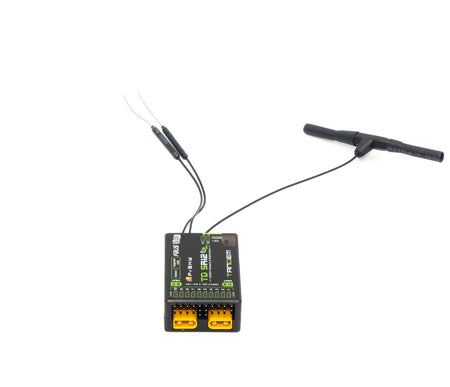 The TD SR12 receiver is equipped with a triple antenna (2×2.4G & 1×900M) design that provides multi-directional wide coverage for the remote signal and is designed for RC users who want to benefit from resilience and long-range in their radio communications.
