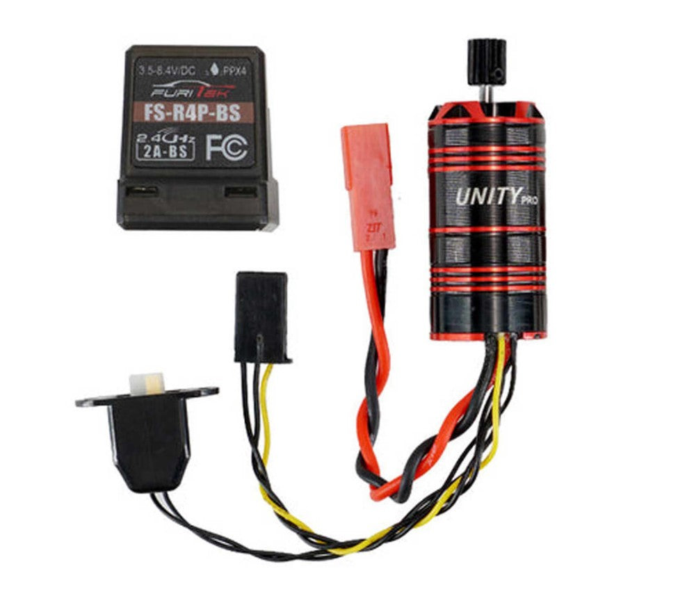 Furitek Ascent-18 UNITY PRO 2-in-1 Micro FOC Brushless System. Introducing the Furitek UNITY PRO, a groundbreaking 2-in-1 brushless system designed specifically for 1/24 and 1/18 scale RC crawlers. As a leader in mini crawler electronics, Furitek brings you cutting-edge technology with the UNITY PRO, combining a brushless motor and brushless ESC into a single, compact unit. Equipped with FOC technology, this system delivers exceptional smoothness, powerful start-up punch, and seamless power transitions. The UNITY PRO offers optimal performance and convenience. It's a perfect drop-in upgrade for the Redcat Ascent-18, elevating your RC experience to the next level.