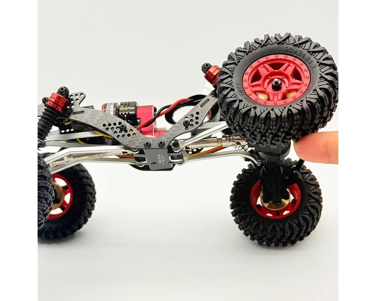 The Furitek Terra Comp 1/18 is built for serious micro-scale performance, combining a full carbon fiber chassis with a 10-degree angled aluminum skid plate to boost rigidity, reduce hang-ups, and maximize breakover clearance on demanding terrain.