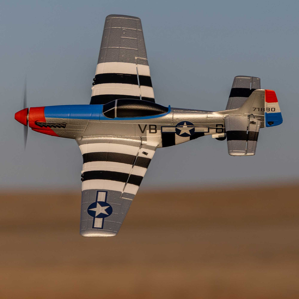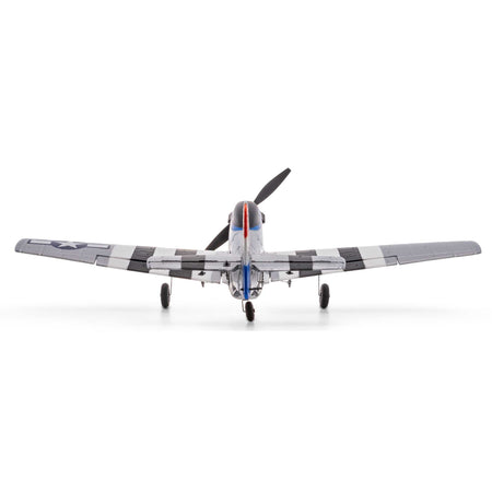 And the fun doesn't stop while or after you learn how to fly! The lightweight yet extremely durable EPP airframe is equipped with a powerful electric motor that delivers long flight times and provides plenty of speed and power to perform aerobatic maneuvers including loops, rolls, and even inverted (upside down) flight in the Experienced mode. Or, if you’re not ready to perform aerobatics on your own, the P-51 can automatically perform single or even multiple loops or rolls in the Beginner or Intermediate flight modes with just a quick press of the “Aerobatics” button and by moving the control stick in the desired direction!
