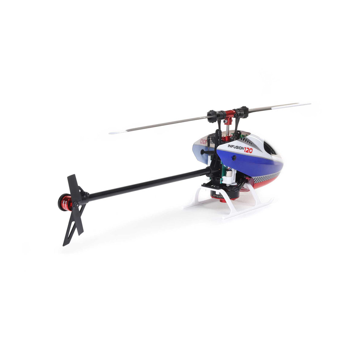 The InFusion 120 is an all-new design from the Blade® team engineered for next-level durability and performance. Featuring an oversized direct-drive power system, no gears are driving the main rotor, allowing for instant power and lower parts count. For intermediate to experienced heli pilots looking for high-performance capabilities in a small size, the InFusion 120 packs a punch perfect for thrilling aerobatics while flying in gymnasiums, backyards, and beyond. The InFusion 120 is easy to see while tearing up the sky with a one-piece canopy that’s factory-finished in a vivid trim scheme and bright white landing gear. The factory-installed all-in-one ESC, flight controller, and receiver unit takes advancements from Spektrum™ Smart Technology and our latest flight controller algorithm to effortlessly provide valuable telemetry feedback and stable yet maneuverable flight capabilities. With BNF® Basic convenience, all you have to do is add a 2S 280-300mAh battery (SPMX3002S30 is recommended), bind it to your compatible 6+ channel Spektrum DSMX/DSM2 equipped transmitter, and you’re taking to the skies!