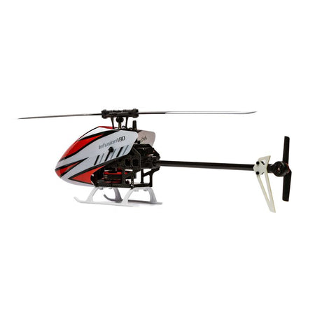 The Blade® InFusion 180 BNF Basic is designed for high performance and durability in a compact size. Featuring an oversized direct-drive power system, no gears are driving the main rotor, allowing for instant power and lower parts count. For those looking for high performance in a small size, the InFusion 180 packs a punch perfect for thrilling backyard aerobatics. The InFusion 180 is easy to see while tearing up the sky with a one-piece canopy, bright white tail fin, and main landing gear. Equipped with the Spektrum™ AR6251MHX Flight Controller, expertly tuned out of the box, this direct drive RC helicopter provides adjustability for personalized flight styles. The Spektrum Avian™ Smart Lite 20-Amp ESC ensures precise head speed control for a seamless flight experience. The innovative blend of carbon fiber, ABS plastic, and aluminum components maximizes rigidity and durability, making this heli an excellent choice for pilots seeking reliability and high performance. Take flight with the Blade InFusion 180 BNF BLH7050.