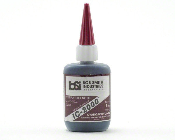 IC-2000™ is a rubber-toughened cyanoacrylate that forms superior shock resistant bonds on non-porous surfaces. The black colored CA has added flexibility for the bonding of metals fiberglass rubber carbon-fiber and other advanced materials. For model use IC-2000™ is ideal for the bonding of bulkheads formers and servo rails to the inside of fiberglass hulls and fuselages. Setup time is 20-40 seconds which can be accelerated with INSTA-SET™. When cured IC-2000™ is pliable enough to be carved with a hobby knife. IC-2000™ is the best adhesive for R/C car tires.