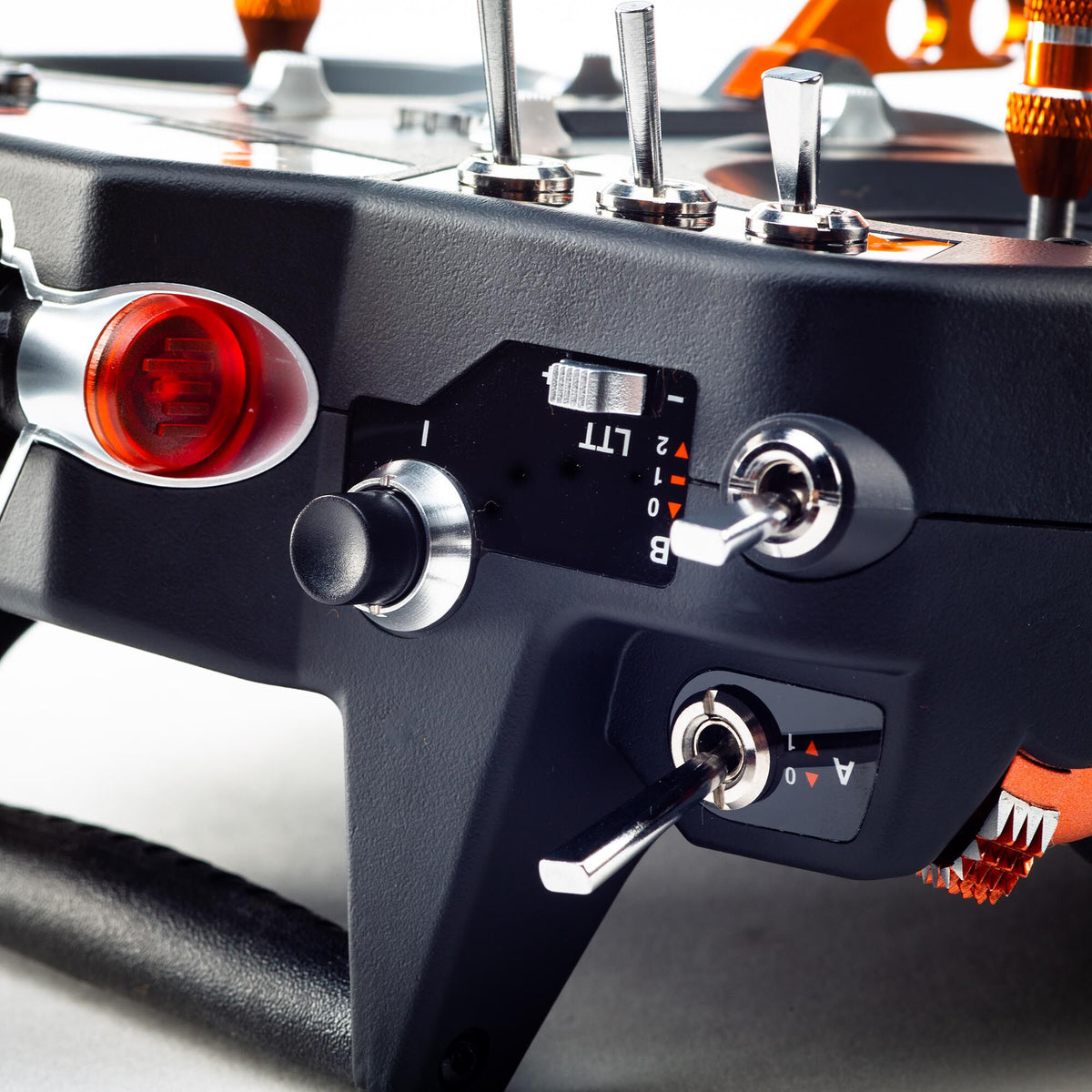- Easy-grip slide levers with firm-center detent plus spring tension adjustment accessible from the front of the iX20 transmitter