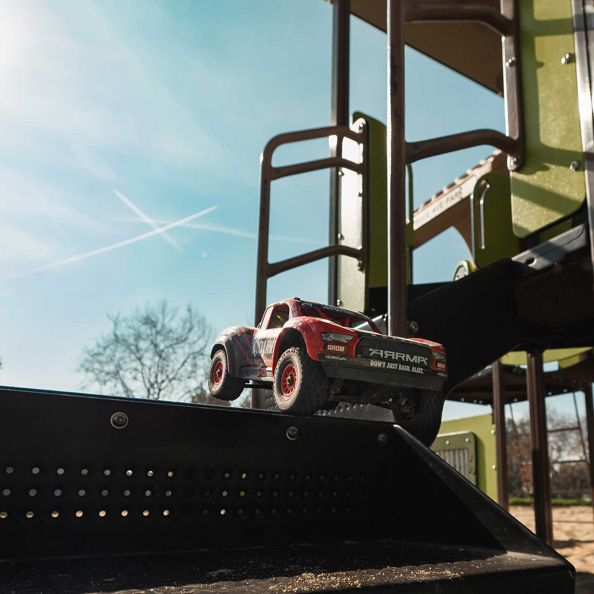 Indoors and outdoors, the MOJAVE GROM goes places that are off-limits to larger RC desert trucks. And it’s still engineered to the same high standards as other ARRMA vehicles. No compromises were made when reducing the size. With its smooth handling and tackle-anything toughness, you can be as aggressive as you like when you send the MOJAVE GROM through the corners and over the jumps.