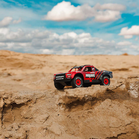 ARRMA MOJAVE GROM MEGA 380 Brushed 4X4 Small Scale Desert Truck RTR with Battery & Charger, Red/Black