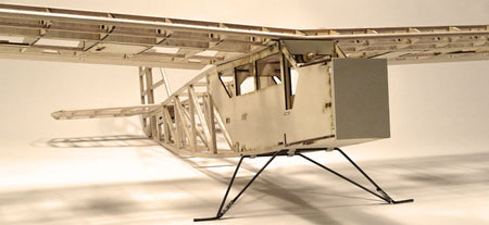 The wing is removable via two bolts from the top of the fuselage. Struts were a necessity on the full-scale Curtiss Robin but are optional for the Robinhood 25. Instructions are included on how to implement them if you'd like to give your Robinhood 25 a touch of Old-School elegance.