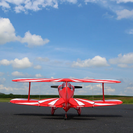 Nothing compares to a Pitts biplane. Critics around the globe agree—flying one will spoil nearly all other aerobatic experiences. First flown almost 75 years ago, to this day the Pitts plans, kits, and finished biplanes that leave the Aviat Aircraft Company are all remarkably similar to the pioneering original design. The E-flite® Pitts S-1S park flyer is a tribute to the distinctive Curtis Pitts design that combines an authentic appearance with great handling for incredible performance any RC pilot can appreciate.