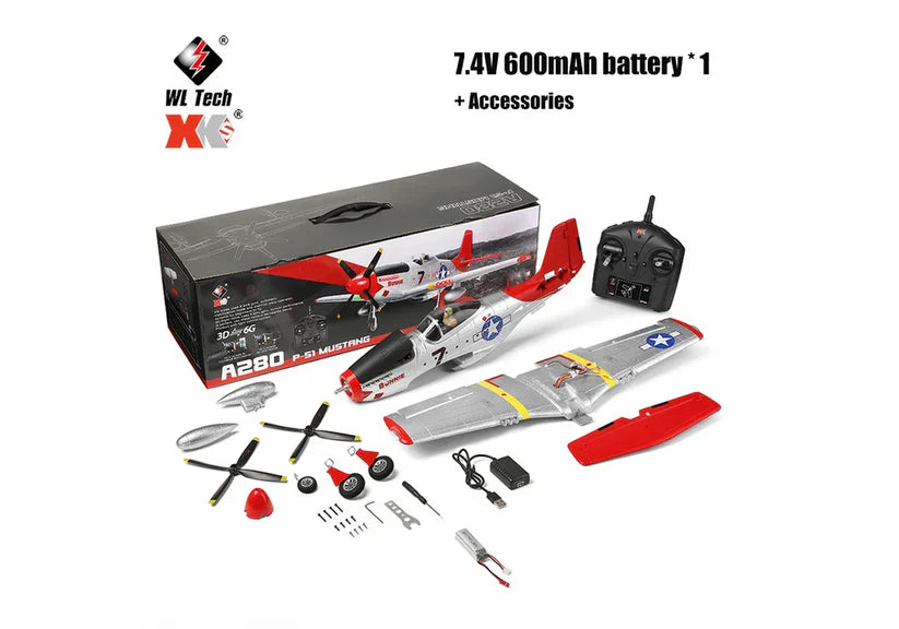 The A280 3D/6G 4CH R/C P51 MUSTANG BRUSHLESS is a top-of-the-line remote-controlled aircraft that combines cutting-edge technology with a classic design. With both 3D and 6G modes, this model caters to pilots of all experience levels, offering versatile flight options for beginners and advanced users alike. Its authentic replication of the iconic P51 Mustang aircraft ensures a realistic and captivating flying experience. Powered by a high-performance brushless motor, the A280 P51 Mustang delivers powerful and efficient flight performance with precise control. Whether engaging in aerial stunts or scale flying, this aircraft promises an exhilarating blend of style, durability, and superior maneuverability.