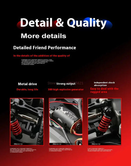 The MN-268 is a sleek and agile 1:16 scale drift RC car designed for high-speed precision and smooth cornering. With two speed modes, a built-in gyroscope for enhanced stability, and interchangeable tire sets for grip or drift, this RC car offers a dynamic driving experience for beginners and enthusiasts alike. Whether on the street or the living room floor, it’s built to impress with responsive control and LED lighting effects.