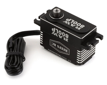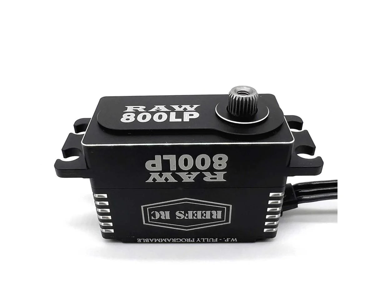 This is the Reefs RC Raw 800LP High Torque Waterproof Digital Servo. Intended for high torque applications where a reliable waterproof servo is needed the Raw 800LP excels. Using a 7-point seal system gives this servo exceptional waterproofing, while a magnetic angle sensor provides precise servo movements you can count on after countless cycles. The gearset consists of strong steel gears captured with an all aluminum servo casing providing excellent heat dissipation and improving consistency. Overall the Raw 800LP delivers where other servos cannot and is an excellent option for most high torque builds.