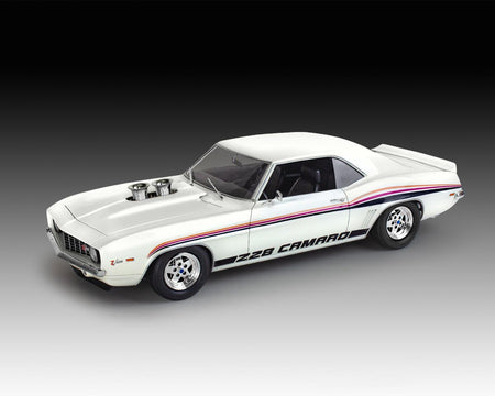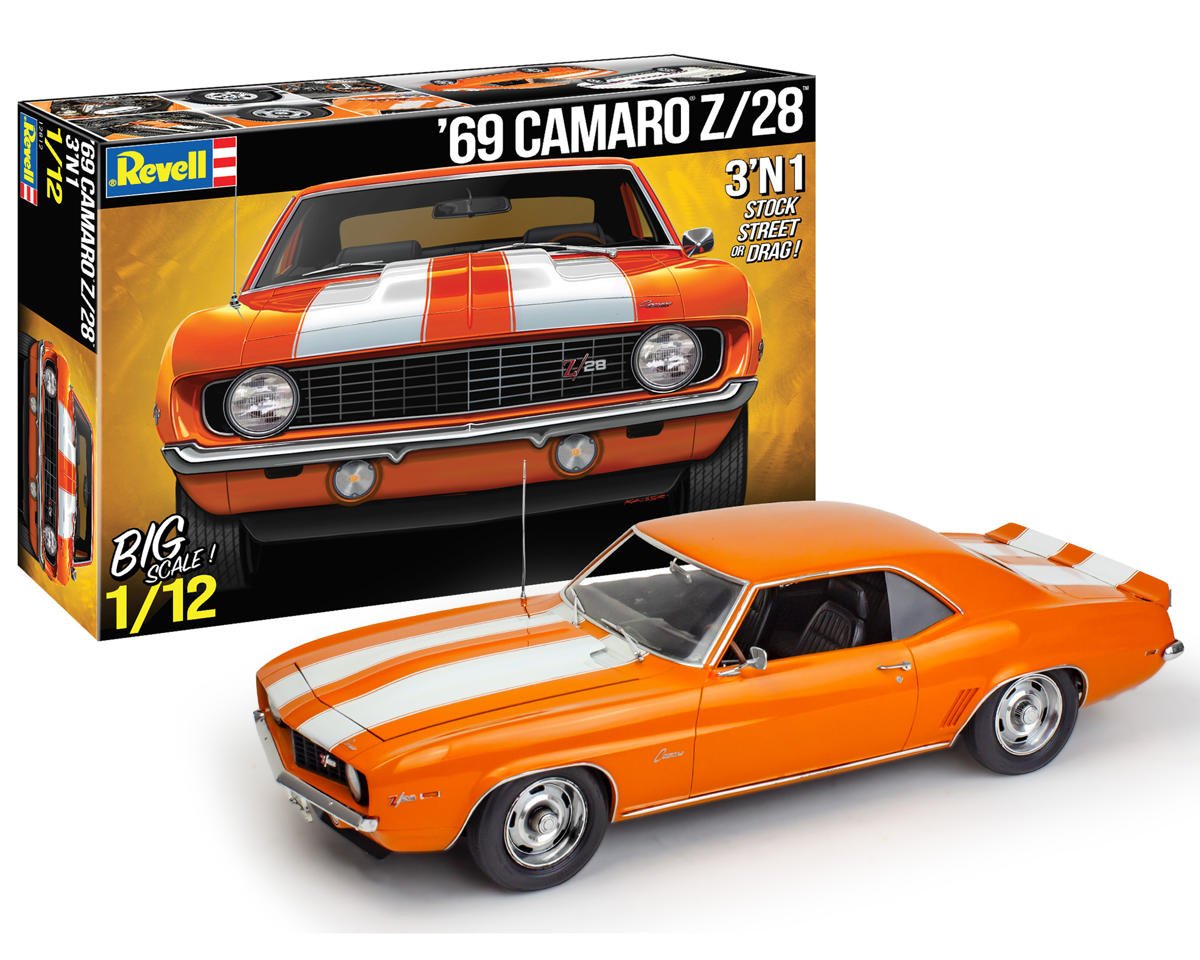 The Revell 1969 Chevy Camaro Z/28 model kit offers an intricate and detailed replica of one of America's most iconic muscle cars. This 1/12 scale model captures the essence of the classic Z/28, featuring a highly detailed V8 engine, an authentic interior, and multiple customization options for factory stock, street machine, or drag racing builds. Designed for experienced modelers, this kit provides an immersive building experience with precision-crafted parts and realistic components.