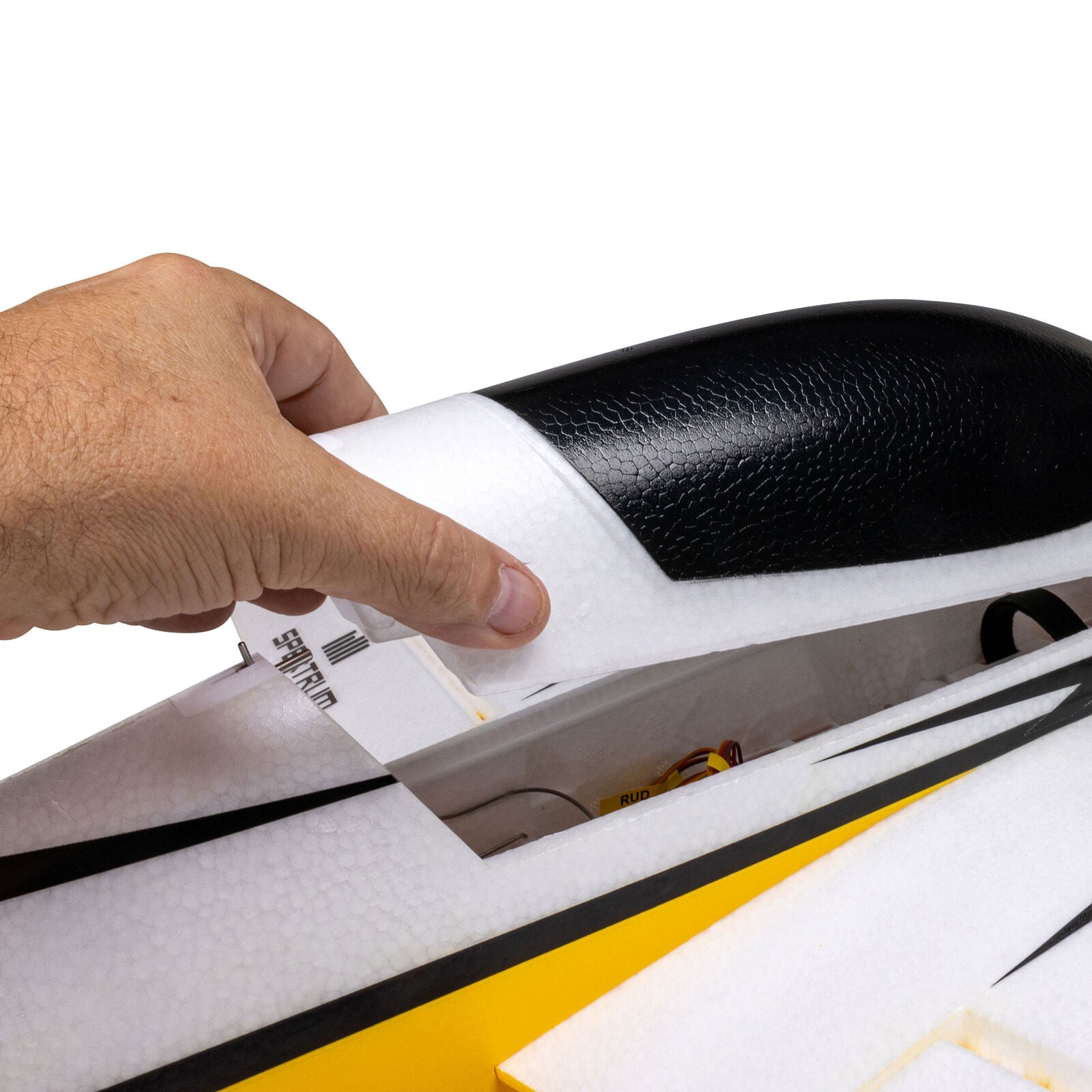 No glue is required for final assembly, and you can have the Sportix 1.1m ready to fly in less time than it takes to charge a battery! And although it's conveniently sized to fit fully assembled in just about any vehicle, you can also remove the two-piece wing for even easier storage and transport. Built-in wing locks and hands-free connections mean you can remove/install the wing in almost no time without the use of any tools or fasteners.