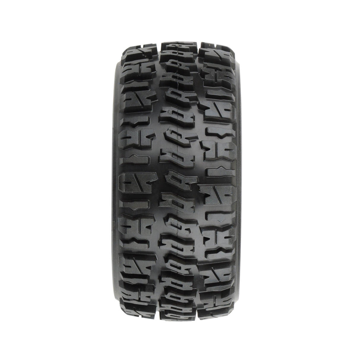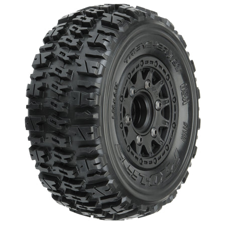 Pro-Line is very excited to announce the availability of the Trencher X SC pre-mounted to the wheel that you need. We take the guesswork out of your glue job by doing the mounting for you so you can spend your time having fun! You will never tread lightly with your Short Course Truck again with Pro-Line's new Trencher X SC tires. The Trencher tires are designed to give your short course truck optimal traction on just about any surface. Realistically shaped treads give your short course truck a scale look while offering ridiculous amounts of forward bite. The tall tread will also offer traction in many different terrains and deliver durability that is second to none. The Trencher X improves on the original with extra width and even more stump pulling traction!